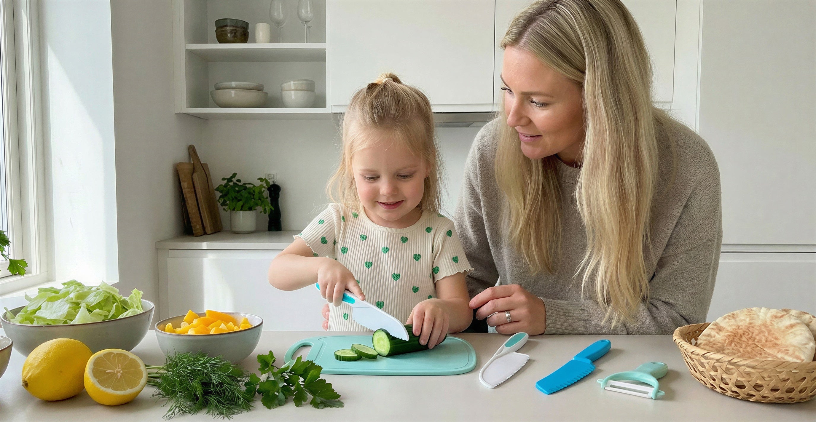 Super fine produkter, og god service. Dejligt at få hjælp i køkkenet af de små hænder, uden man skal bekymre sig over uheld med skarpt køkkengrej, og ungerne synes det er sjovt de kan få lov selv at styre køkkengrejet og føle sig inkluderet i madlavningen.