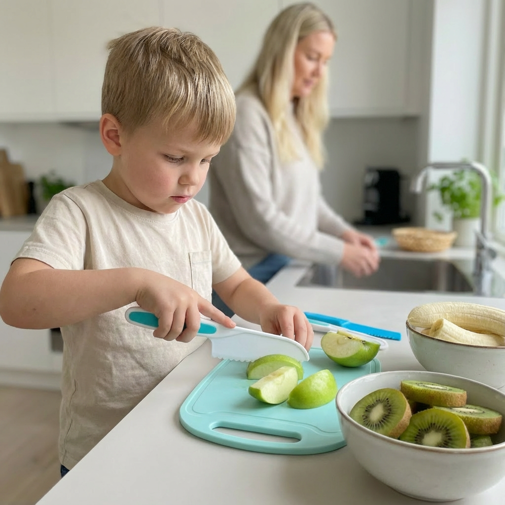 Vi købte 2 sæt, så børnene kunne blive en del af madlavningen i hjemmet. Det vigtigste for os var ikke, at gå på kompromis med sikkerheden, når det gælder køkkenredskaber til børn. Vi er 100% tilfredse.